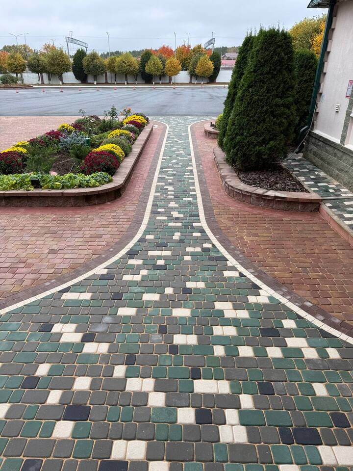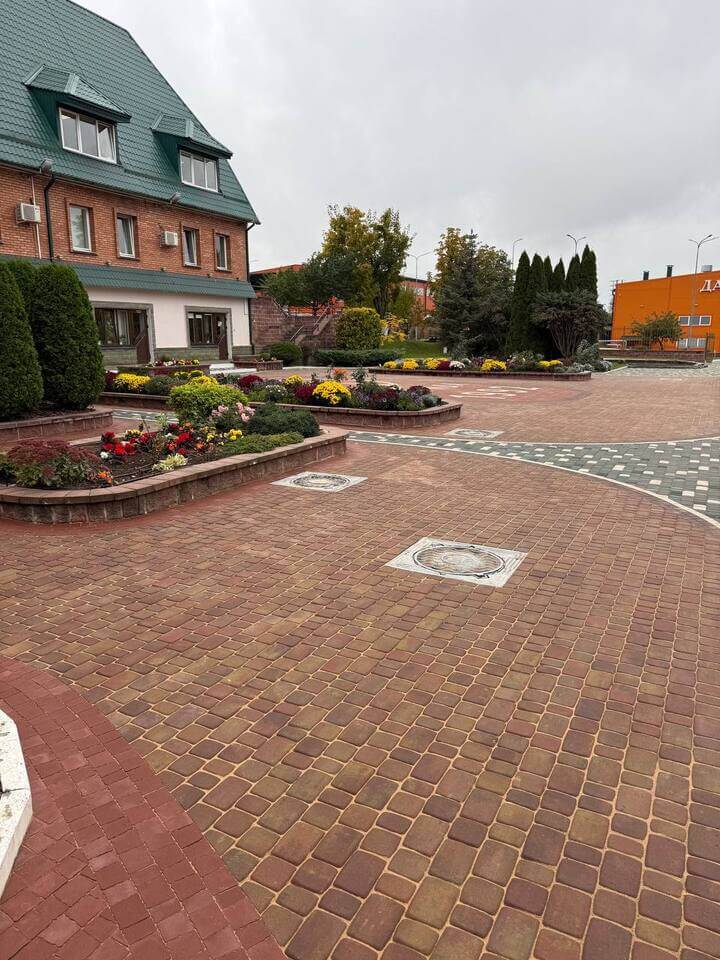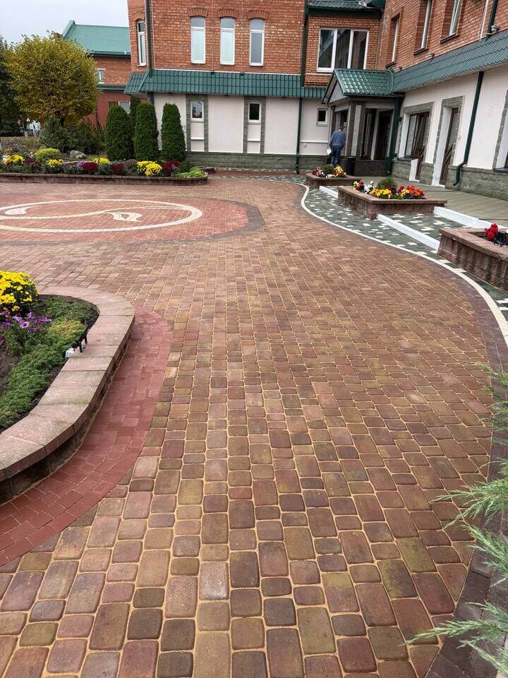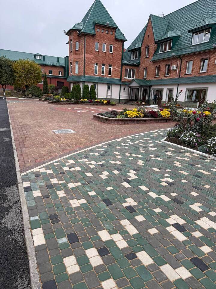 На территории ЧП «Дарида» выполнена полная замена покрытия с укладкой новой тротуарной плитки коллекции «Старый город». Работы начались с демонтажа старого покрытия, после чего наша команда реализовала проект заказчика с различными рисунками мощения.