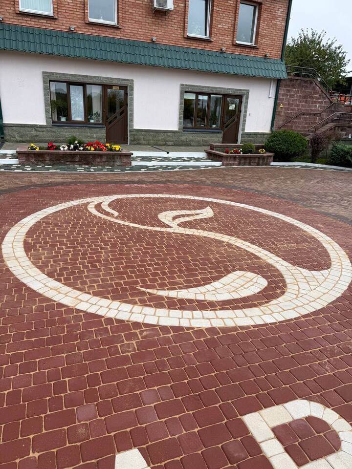 Особое внимание уделено созданию логотипа компании, выложенного из тротуарной плитки — это стало центральным акцентом территории. Современное покрытие обеспечивает долговечность, эстетичный вид и удобство в эксплуатации.